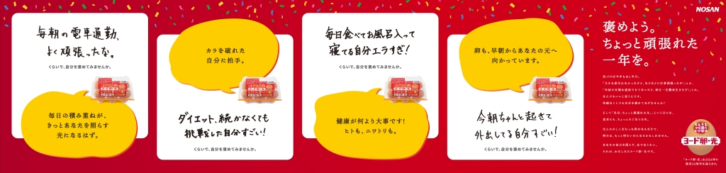 広告を見て「今年一年、頑張った自分を褒めよう」と思える瞬間を「ヨード卵・光」とともに感じていただけたら、嬉しく思います。